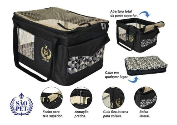 São Pet é uma excelente opção para quem deseja levar seu animal de estimação em viagens de avião de forma segura e prática. Seu design foi elaborado para garantir o conforto do pet, além de proporcionar tranquilidade aos donos. Com estrutura firme e prática de montar e desmontar, a bolsa conta com uma guia que permite prender o animal na coleira, evitando possíveis fugas ao abrir a bolsa.