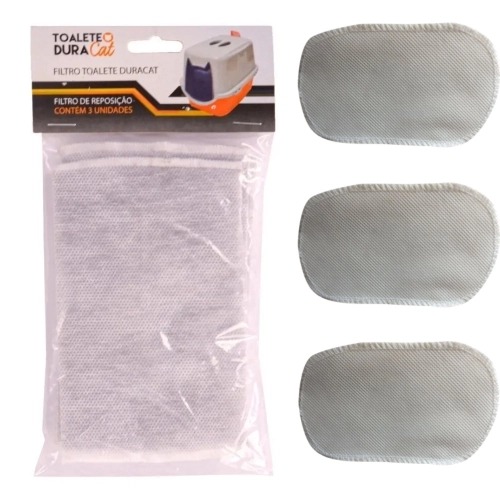 O Filtro de carvão ativado é um dos responsáveis pela qualidade da Caixa de Areia Fechada para gatos da Durapet´s, ele impede que a abertura de ventilação exale odores e bactérias para o ambiente, porem o fabricante afirma que a durabilidade do mesmo é de apenas 30 dias, fazendo com que seja necessário a troca periódica do produto.